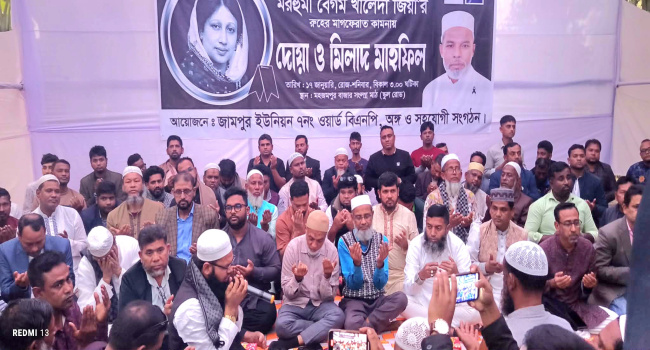সোনারগাঁয়ে জামপুর ইউনিয়ন বিএনপির উদ্যোগে খালেদা জিয়ার রুহের মাগফেরাত কামনায় দোয়া মাহফিল