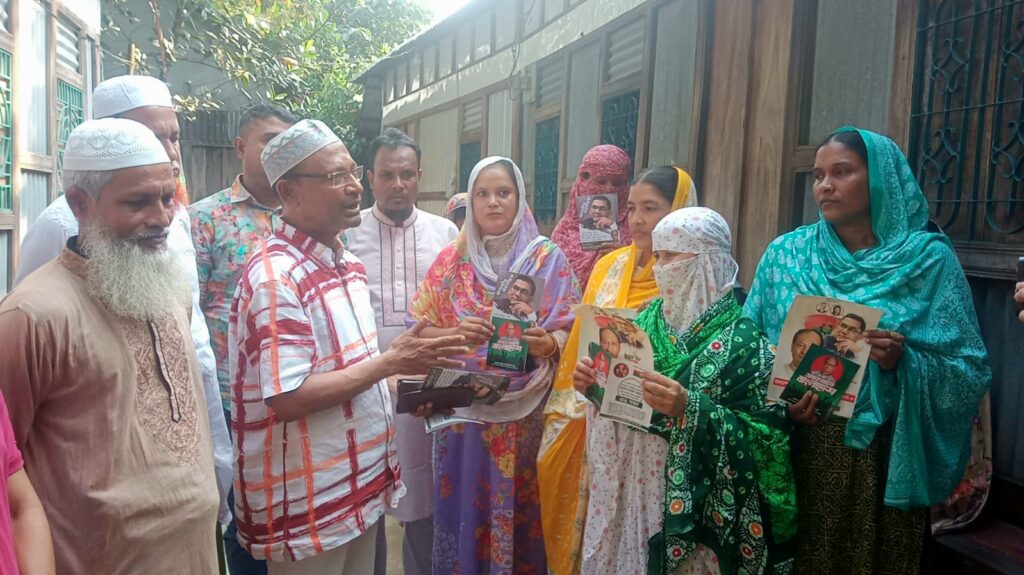 সোনারগাঁয়ে অধ্যাপক মামুন মাহমুদের পক্ষে লিফলেট বিতরণ ও গণসংযোগ