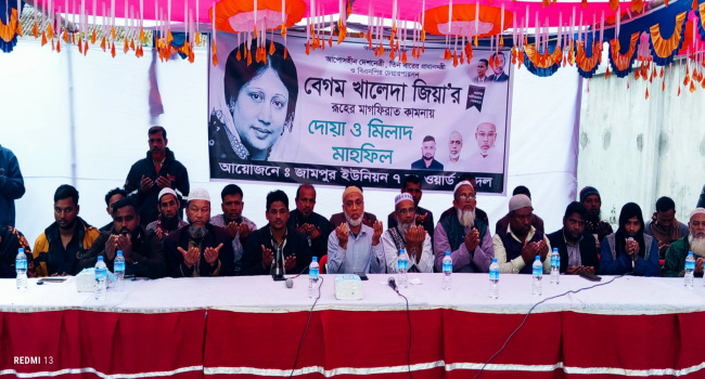 জামপুরে খালেদা জিয়ার রুহের মাগফিরাত কামনায় যুবদলের দোয়া মাহফিল