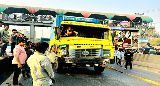 প্রত্যক্ষদর্শীরা জানান, চলন্ত অবস্থায় সড়কের মাঝপথে একটি ট্রাক হঠাৎ বিকল হয়ে পড়লে পেছন থেকে আসা একটি লরি নিয়ন্ত্রণ হারিয়ে বিকল ট্রাকটিকে সজোরে ধাক্কা দেয়। এতে লরির চালক আহত হন।