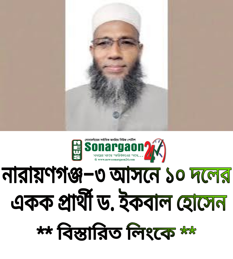 নিউজ সোনারগাঁ :নারায়ণগঞ্জ–৩ (সোনারগাঁ–সিদ্ধিরগঞ্জ) আসনে আসন্ন জাতীয় সংসদ নির্বাচনে ১০ দলের জোটের একক প্রার্থী হিসেবে জামায়াতে ইসলামী নেতা ড. মাওলানা প্রিন্সিপাল ইকবাল হোসেনকে ঘোষণা করা হয়েছে।