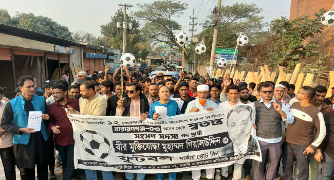 বাদ্য বাজনা বাজিয়ে ফুটবলের পক্ষে ভোট চেয়ে মিছিলটি পৌর এলাকার বিভিন্ন সড়ক প্রদক্ষিণ করে পানাম বাজারে গিয়ে শেষ হয়।