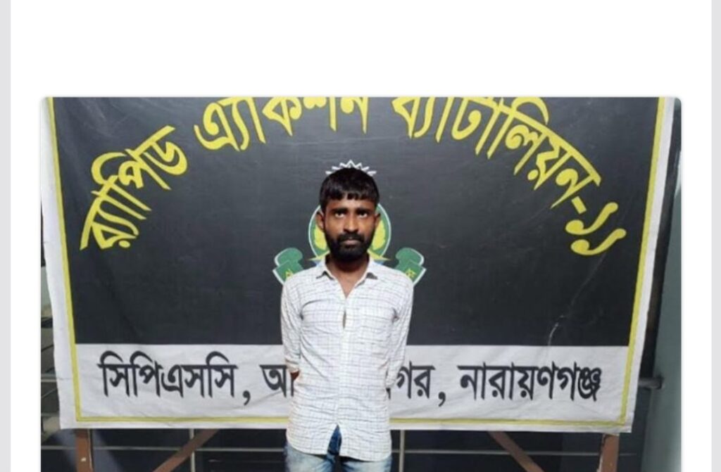 আটককৃত হলেন, ময়মনসিংহ জেলার গৌরীপুর থানার তাতরাকান্দা এলাকার মজিবর তালুকদারের ছেলে মোঃ রাসেল (৩০)।