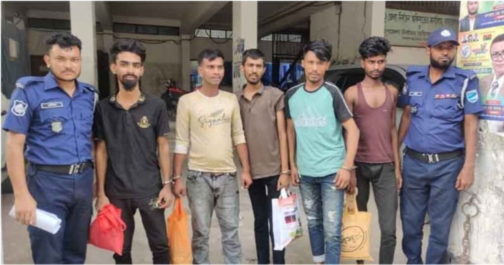 ঢাকা-চট্টগ্রাম মহাসড়কের নারায়ণগঞ্জের সোনারগাঁয়ের দড়িকান্দি এলাকা থেকে দুই যুবককে অপহরণ করে মুক্তিপনের জন্য নির্যাতনের অভিযোগে ৫ অপহরণকারীকে গ্রেপ্তার করেছে সোনারগাঁ থানা পুলিশ। গত সোমবার রাতে ওই এলাকায় অভিযান চালিয়ে তাদের গ্রেপ্তার করে। গ্রেপ্তারকৃতদের মঙ্গলবার দুপুরে নারায়ণগঞ্জ আদালতে পাঠিয়েছে। অপহরণের ঘটনায় ভূক্তভোগীর বড় বোন রেখা আক্তার বাদি হয়ে গতকাল মঙ্গলবার সোনারগাঁ থানায় মামলা দায়ের করেন। গ্রেপ্তারকৃতরা হলো- উপজেলার সনমান্দি ইউনিয়নের কুমারচর এলাকার জজ মিয়ার ছেলে মো.স্বাধীন মিয়া, ভাটিরচর এলাকার আলমগীর হোসেনের ছেলে ফয়সাল মিয়া, নাজিরপুর এলাকার আক্কেল আলীর ছেলে রাব্বানী হোসেন মুন্না, বন্দর উপজেলার ছোটবাগ গ্রামের আসাদুজ্জামানের ছেলে মো. সাজ্জাদ হোসেন ও গজারিয়া উপজেলার চর বাউশিয়া গ্রামের নান্নু মিয়ার ছেলে রাশেদ ওরফে রাসেল।