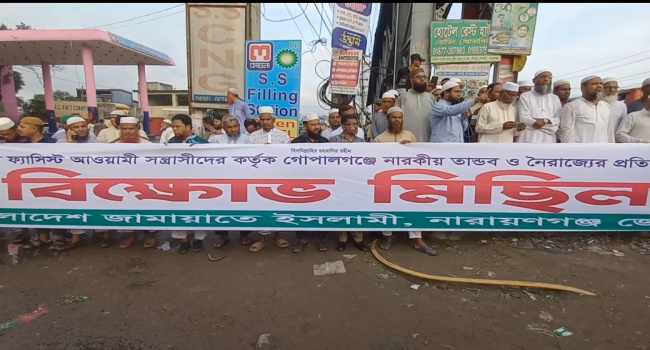 নিউজ সোনারগাঁ: গোপালগঞ্জে এনসিপির নেতাকর্মীদের উপর হামলার প্রতিবাদে সোনারগায়ে বাংলাদেশ জামায়াতে ইসলামী নারায়ণগঞ্জ জেলার উদ্যোগে বিক্ষোভ মিছিল অনুষ্ঠিত হয়েছে।