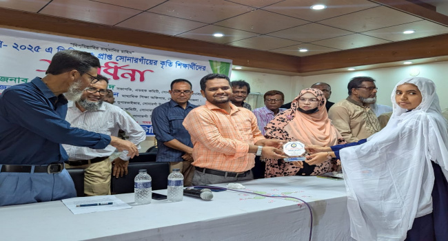 অনুষ্ঠান শেষে সোনারগাঁয়ের ২৬টি মাধ্যমিক স্কুলের ২০২৫ সালের এসএসসি পরীক্ষায় ২০৩ জন জিপিএ-৫ প্রাপ্ত কৃতি শিক্ষার্থীদের ক্রেস্ট দিয়ে সংবর্ধনা দেওয়া হয়।