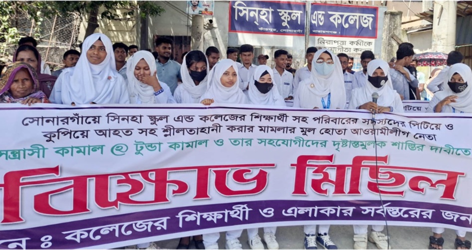 নিউজ সোনারগাঁ: উপজেলার কাঁচপুর সিনহা স্কুল এন্ড কলেজের একাদশ শ্রেণির শিক্ষার্থী জোনাকি আক্তারের ওপর সন্ত্রাসী হামলা ও শ্লীলতাহানির প্রতিবাদে মানববন্ধন ও বিক্ষোভ করেছে শিক্ষার্থীরা।
