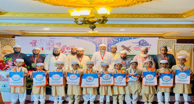 নারায়ণগঞ্জের সিদ্ধিরগঞ্জ এলাকার চিটাগাংরোডে গ্র্যান্ড তাজ পার্টি সেন্টারে বৃহস্পতিবার (২ অক্টোবর) দুপুরবেলা তানযীমুল উম্মাহ মাদ্রাসা, নারায়ণগঞ্জ শাখা প্রি-হিফয ও ইবতেদায়ী সেকশনের বার্ষিক পুরস্কার বিতরণী অনুষ্ঠান -২০২৫ এর দ্বিতীয় অধিবেশনে